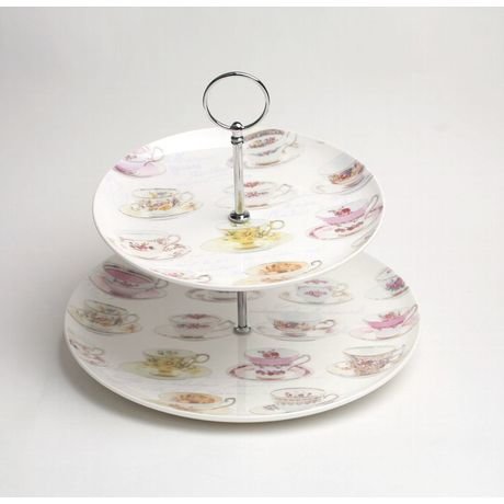 Двухъярусная ваза для фруктов с нежным и неброским узором изящных чашечек отлично подойдет для приема большого количестве гостей. На двух этажах блюда можно красиво разместить сразу несколько видов фруктов или небольших порционных десертиков (например, кусочки шоколада или конфеты, зефир или маленькие пирожные). Ваза сделана из прочного фарфора, который легко поддается чистке. Тонкий металлический стержень вазы лишь добавляет ей элегантности. Материал: фарфор Серия: Чайный аромат Производитель: Nuova R2S SpA, Италия