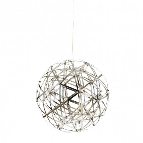 Светильник Raimond — точная копия подвесного светильника от голландских дизайнеров. Он интересен свою очередь уже не оригинальностью формы, а своей реализации: две вложенных ажурных сферы из стальных пластин создают сложную архитектурно-геометрическую конструкцию, ассоциирующуюся с наукой и динамикой.