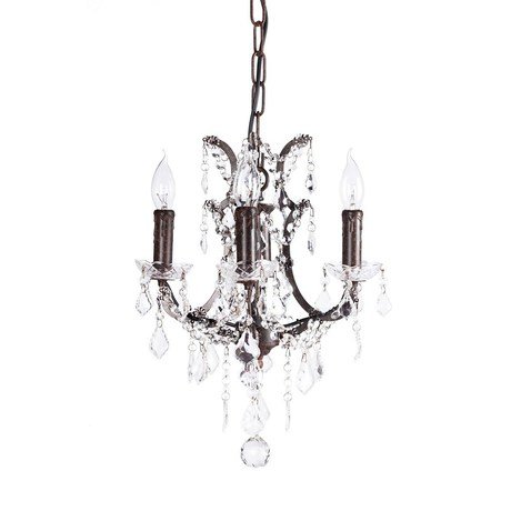Нежная и изящная люстра для небольшого помещения. Люстра декорирована множеством бус и подвесок из хрусталя, а плафоны напоминают слегка опаленные свечи.