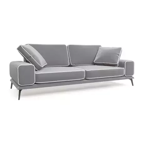 Диван Солнечное побережье отличается легкостью и воздушностью благодаря высоким ножкам, которые меняют визуальное восприятие объемов, создавая современный и стильный образ. Сбалансированный дизайн с широкими подлокотниками и пышными подушками создает ощущение комфорта и уюта.