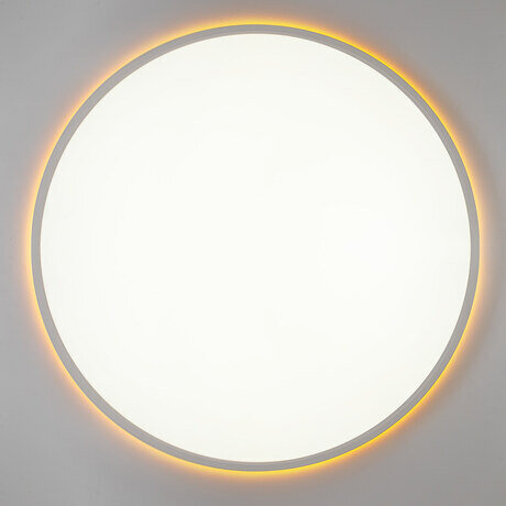 Изделие обладает высокой энергоэффективностью основного света – 120Лм/Вт. Площадь освещения до 25м². Мощность: основной свет - 50Вт, потолочная подсветка – 12Вт. Диаметр 60см, высота 2,5см. Свет безопасный для глаз, без мерцания и пульсаций. Тип крепления – удобная монтажная платформа.