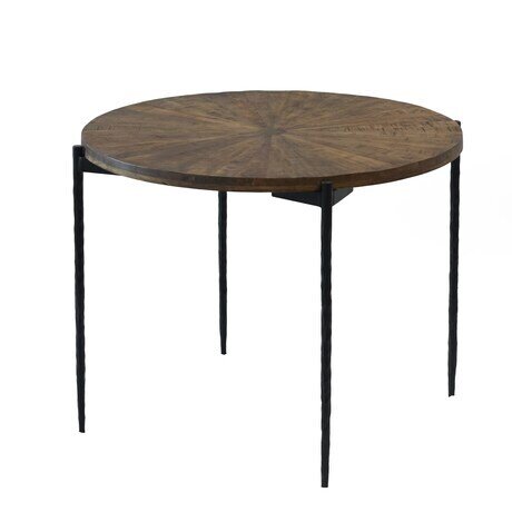 Изысканный круглый обеденный стол, где лаконичность линий подчеркивает благородство материала. Конусообразные резные ножки чёрного цвета создают ощущение воздушной лёгкости и графичной точности, а наборная столешница тёмно-коричневого оттенка раскрывает всю глубину и характер натурального массива. Идеальная круглая форма делает каждый приём пищи особенным, объединяя гостей в атмосфере гармонии и уюта.