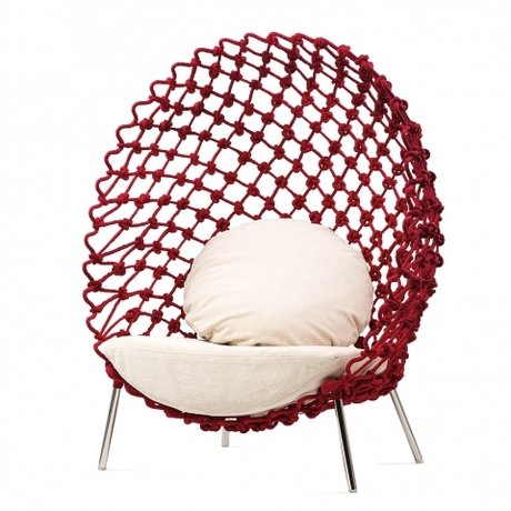 Изделие представляет собой стальную нержавеющую конструкцию, оплетенную хлопковым канатом, и мягкое сиденье с тканевой обивкой. Использованные в производстве материалы позволяют размещать кресло как в помещении, так и на открытом воздухе. Благодаря шаровидной форме спинки достигается невероятное чувство комфорта, кресло как бы обволакивает вас словно кокон.