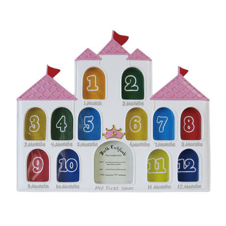 В чём плюсы: Фоторамка для ежемесячного отчёта о первом годе жизни твоего малыша. В рамке-замке 13 окошек для фотографий. Выполнена в виде замка, станет отличным украшением интерьера детской комнаты. Сзади есть откидывающаяся ножка, чтобы поставить рамку на стол.Размер (ВхШхГ): 27 х 33 см.Материал: пластик.