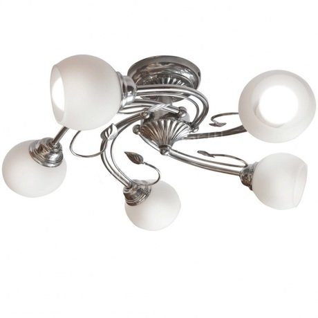 Назначение светильника: для комнаты, Стиль светильника: модерн, Тип: потолочная, Материал светильника: металл, стекло, Диаметр: 540 мм, Высота: 210 мм, Количество ламп: 5 шт, Тип лампы: накаливания, Мощность: 60 Вт, Патрон: Е14, Цвет арматуры: хром