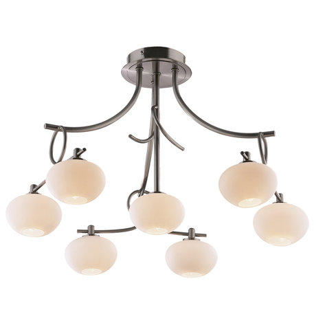 Назначение светильника: для комнаты, Стиль светильника: модерн, Материал светильника: металл, стекло, Диаметр: 480, Высота: 320, Количество ламп: 7 шт, Тип лампы: галогенная, Мощность: 40 Вт, Патрон: G9, Цвет арматуры: матовый никель