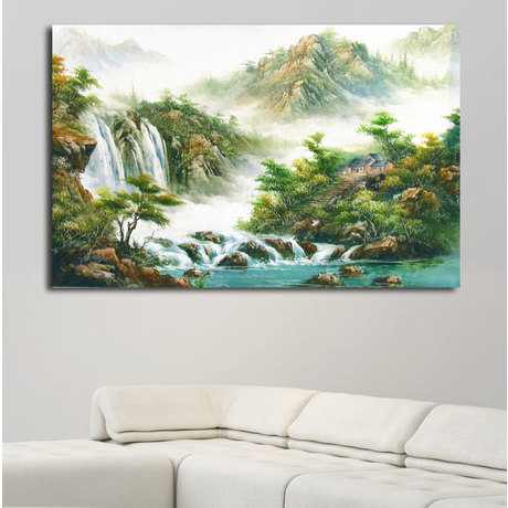 Стоимость доставки товара «Декоративная картина на холсте: Дом у водопада» можете уточнить здесь