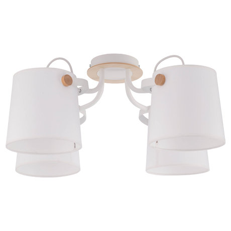 Бренд: TK Lighting; Коллекция: Click White; Количество ламп: 4; Мощность лампы, W: 60; Общая мощность, W: 240; Площадь освещения, м2: 13.3; Тип цоколя: E27; Тип лампочки (основной): Накаливания; Напряжение, V: 230; Степень защиты, IP: 20; Виды материалов: Деревянные; Материал арматуры: Металл; Материал плафонов: Ткань; Цвет: Белый; Цвет арматуры: Бежевый; Цвет плафонов: Белый; Место установки: На потолок.
