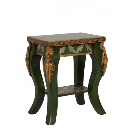 Выполненный из натуральной древесины табурет в темно-зеленом цвете, декорированный золотыми и серебряными элементами, узорами и орнаментами, станет истинным украшением интерьера в стиле арт-деко. Табурет можно приобрести как самостоятельный предмет мебели, однако наиболее гармонично он будет смотреться в комплекте с консолью из той же коллекции.