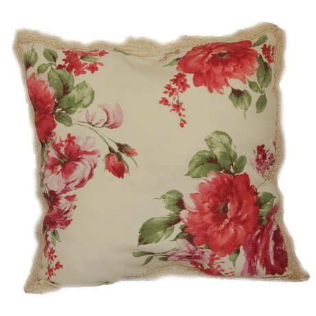 Подушка с цветочным принтом крупных роз. Размер 42х42см. На молнии. Наполнитель синтепух. Обработана бахромой. Подушка с запАхом.