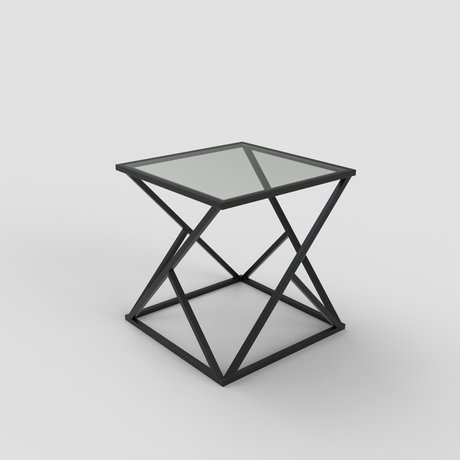 ElsaЖурнальный столик с невесомым дизайном, черный каркас, прозрачное закаленное стекло, 45×45×45 см